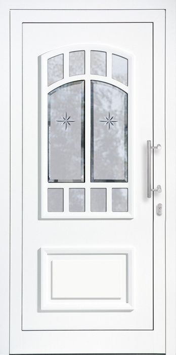 Glas: Designglas „Mainau“, mattiert mit klarem Facetten-und Sternschliff, oben und unten vollflächig mattiert